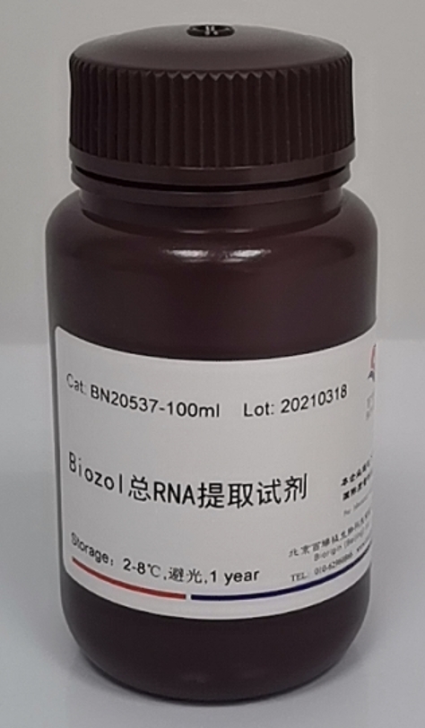 本試劑是一種通用的總 RNA 提取試劑,適用于動(dòng)植物細(xì)胞或組織及細(xì)菌的總RNA 抽提,可有效防止 RNA 在提取過程中的降解。獲得的 RNA 可直接用于 Northern 雜交,純化 mRNA,體外翻譯,RNase 保護(hù)實(shí)驗(yàn),RT-PCR 以及cDNA 克隆等一系列操作。該試劑可用于 100 次總 RNA 提?。?0 平方厘米細(xì)胞或 100mg 組織)。